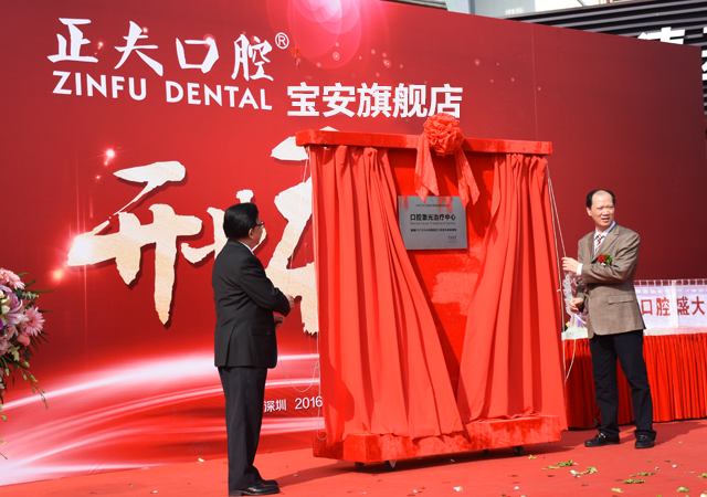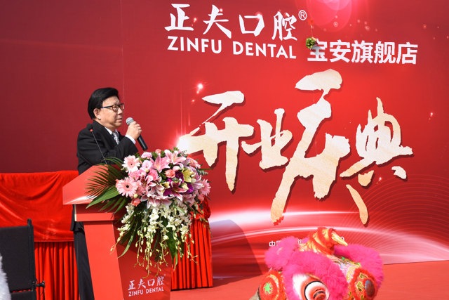 2016年12月10日,正夫口腔宝安旗舰店璀璨开幕!正夫口腔董事长杨瑞锋先生、中华口腔医学会名誉会长樊明文先生、中华口腔医学会秘书长王渤女士、前海红鼎基金董事长陈校良先生、上海品瑞医疗器械设备有限公司董事长周龙华先生、原深圳市罗湖区卫生局副局长董书贤先生等一行到场祝贺并共同见证了正夫口腔宝安旗舰店隆重的开业庆典!