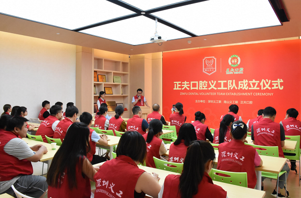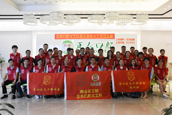 正夫口腔义工队成立仪式圆满落幕了。义工队将会秉承"服务社会,传播文明"的宗旨,倡导"参与、互助、奉献、进步"的服务精神,传播"助人自助"、"送人玫瑰、手有余香"的互助理念,争做精神文明的传播者和城市人文精神的践行者,共同谱写文明深圳的新篇章!