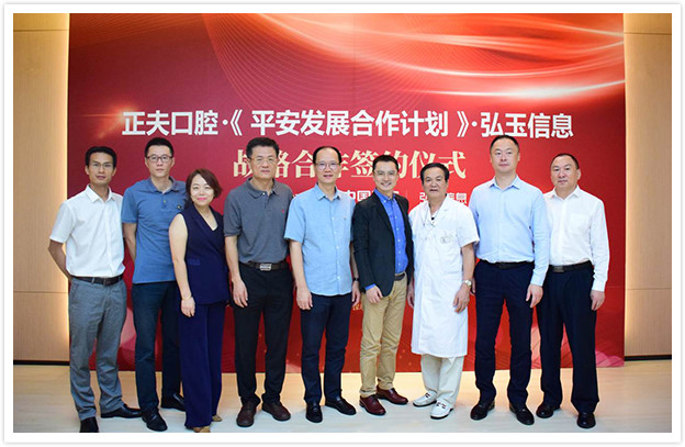 弘玉信息执行总裁王杰先生与正夫口腔董事长杨瑞锋先生就战略合作签约,标志着正夫口腔·《平安发展合作计划》·弘玉信息的战略合作关系正式确立。相信在未来的日子里,大家将同心协力,共同营造一个和谐、安全、专业的口腔医疗环境。