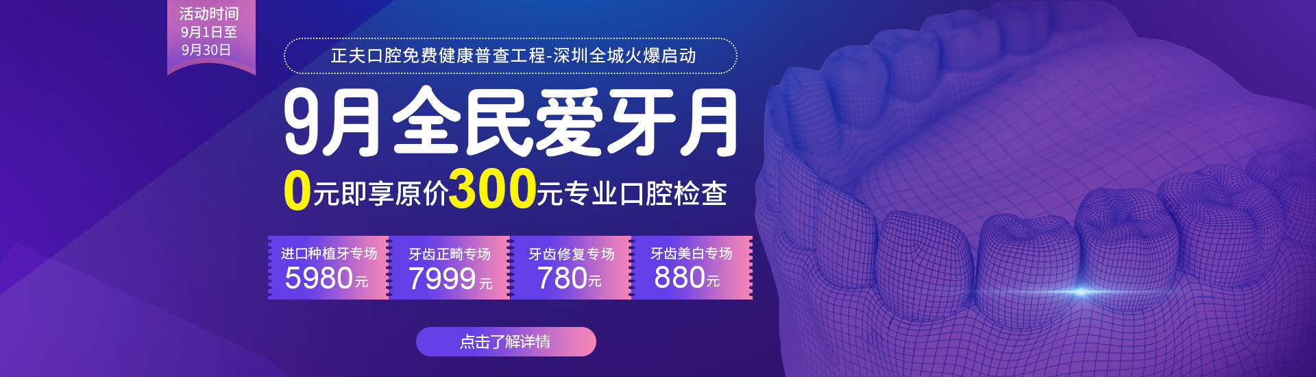 即日起至9月30日,正夫口腔开展了看牙优惠活动,活动期间,网络预约可享以下优惠: