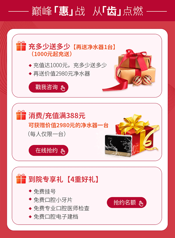 正夫口腔6岁了~周年庆当然要搞大事情,种植、矫正、美白、修复。。。各种到院礼、消费礼、充值礼等优惠空前,省钱省到爆。时逢双11又会有什么呢?拒绝套路不搞虚的。