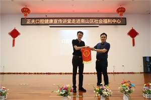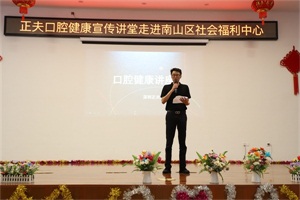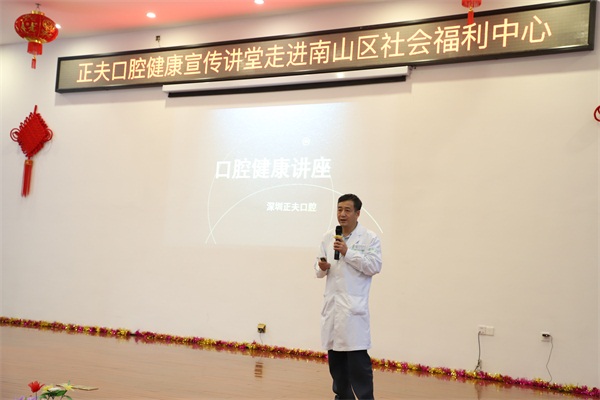 正夫口腔执行副总张哲人先生代表正夫口腔党支部在本次活动上表达了对福利院老年朋友的亲切慰问和对长期以来为社会无私奉献的南山福利院全体干部职工,致以崇高的敬意,对向前来口腔义诊的青年志愿者表示衷心的感谢及发表致辞,并表示“关注口腔健康,推动公益发展”正夫口腔的脚步从未停下!正夫口腔自品牌成立以来,一直保持高度的社会责任感,致力于提升市民口腔健康保健意识,推动慈善公益事业的发展,提高深圳市民口腔健康水平,构筑市民口腔健康防护墙,实现全民健康梦。本次致辞展现了正夫口腔以守护市民口腔健康为事业和对社会责任感的担当的精神。