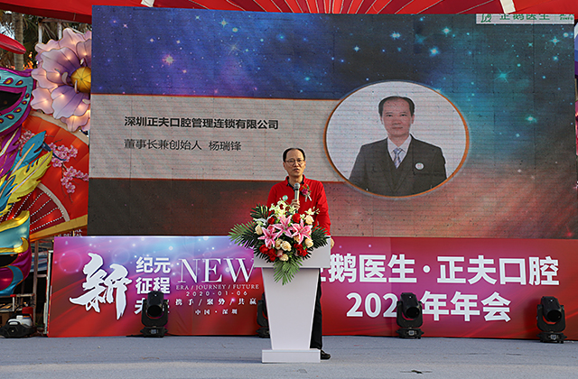最后,企鹅医生正夫口腔集团董事长杨瑞锋先生为本次年会致辞,他在致辞中表示:2019年,正夫口腔稳中求进,做到适应市场的发展和变化,努力改革创新。在12月,正夫口腔正式加入由腾讯、基汇资本、碧桂园创投、红杉等知名投资机构投资的企鹅杏仁集团。在未来,正夫口腔将会在品牌、流量、运营、管理、人才引进等各个方面得到质的飞跃,我们在深圳将会更广泛地建设布局完善的口腔服务网络,为深圳市民带来更便捷更专业的口腔医疗服务,不忘初心,砥砺前行,做正直正义正能量的口腔大夫。