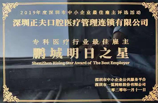 2020年1月11日下午,由深圳市中小企业服务局指导,深圳市一览网络股份有限公司和深圳市中小企业公共服务联盟联合主办的2019年度深圳市中小企业最佳雇主颁奖典礼在深圳市人才公园一楼多功能会议厅顺利举行,企鹅医生正夫口腔荣获“最佳雇主”称号。