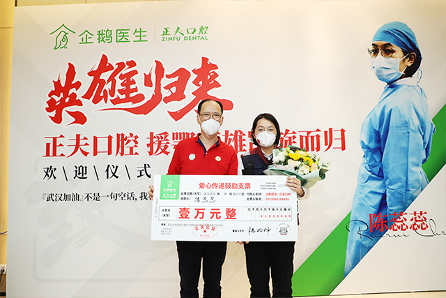 对医护人员的敬意不应只停留在形式上,更应该落实到实际行动中。企鹅医生正夫口腔集团领导当场给陈蕊蕊抗疫英雄发放了爱心传递鼓励奖金10000元,给予实实在在的鼓励与支持。