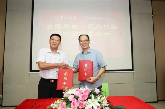 签约仪式上,企鹅医生·正夫口腔董事长杨瑞锋先生和深圳市梅县商会秘书长吴胜昌先生互相表达了对双方达成合作的美好祝愿。