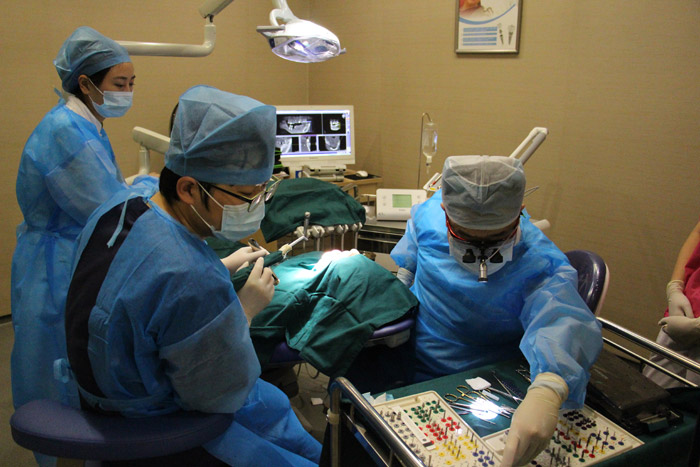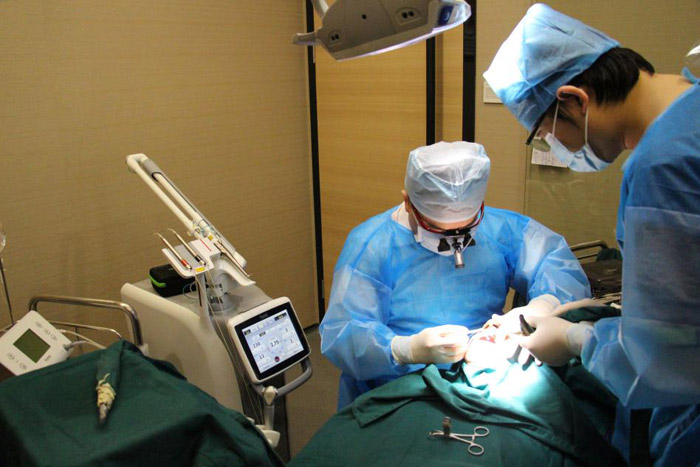 研讨会后,洪宏德还为深圳已预约的牙周病患者进行口腔激光亲诊。