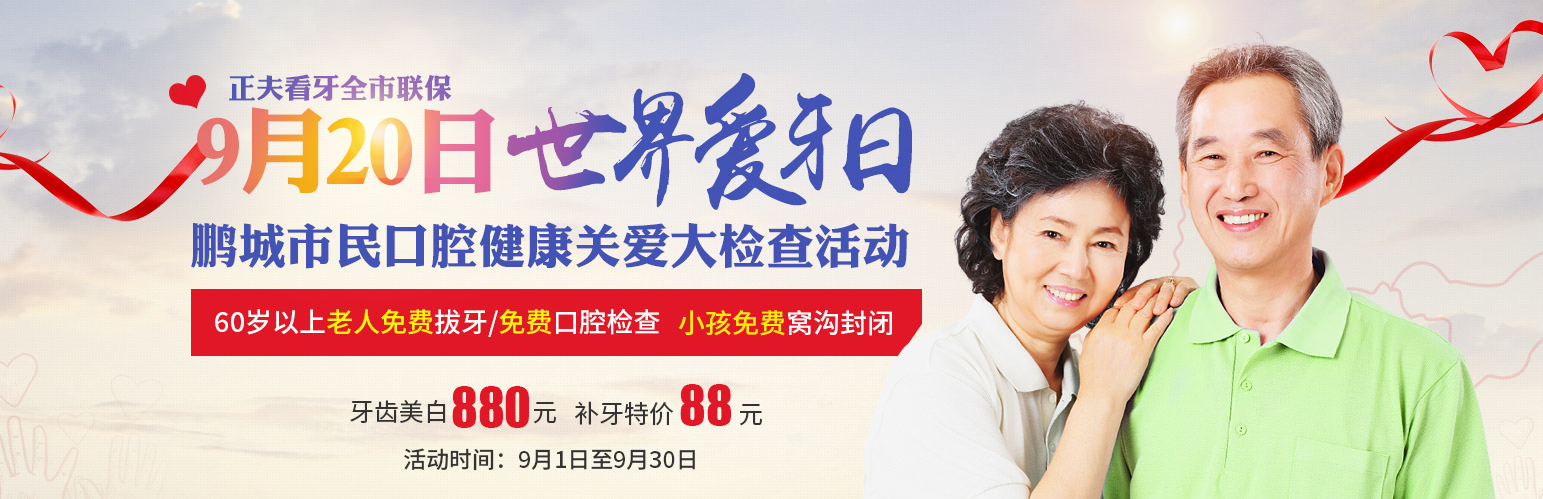 今年的9月20日将迎来第二十七个世界“爱牙日”。为了秉承世界爱牙日的精神,加强口腔预防工作,落实预防为主方针的重要举措。正夫口腔将举行“鹏城市民口腔健康关爱大检查活动”。