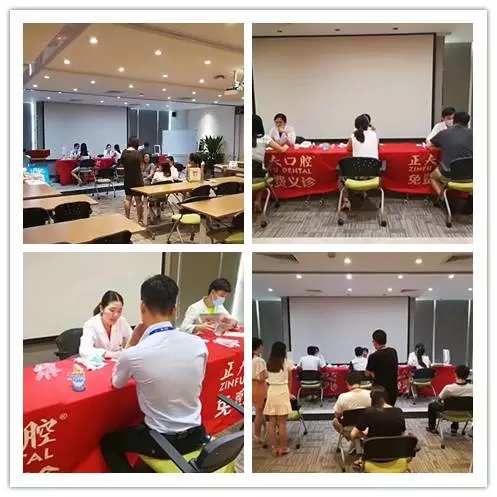 正夫口腔义诊刚开始不久就成为德维森大厦4楼热闹的地方,不愧是华成峰的精英员工,知道参与人员多会拥挤现场,即刻分批而至。我们可以感受到他们十分关注自己的口腔健康,几乎每一个都仔细询问了许多牙齿问题,而我们正夫口腔的牙医都专业而耐心的一一解答。